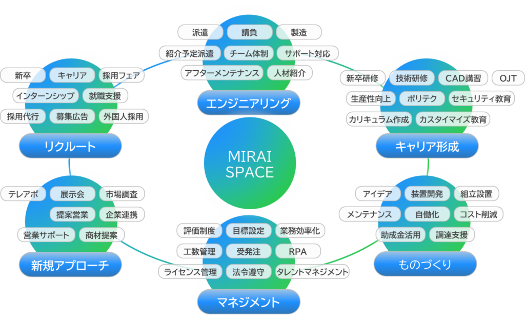 MIRAI SPACEは、地域に根差した視点と実務経験を強みに、企業と人材の成長を支援しています。